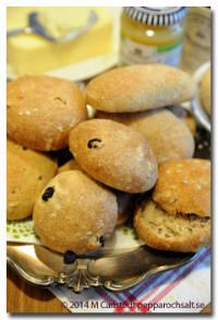 Gör så här:12 bröd Värm deg-vattnet till 37 grader, lägg i kryddorna. Lös jästen i vattnet och tillsätt sirap, olja och salt. Knåda i mjölet tills degen börjar bli fast och släpper från bunkens kanter. Knåda sedan degen i minst fem minuter, helst med degblandare. Låt degen jäsa övertäckt cirka 20 minuter. Ta upp på mjölat bakbord och skär degen i 12 bitar. Forma varje degbit till tvåcentimeter tjocka rullar. Forma till ringar och nyp ihop skarven noga. Låt nu bröden jäsa på plåt i cirka 30 minuter, till dubbel storlek. Koka upp vatten och socker i en stor kastrull. Sänk ner bröden i vatten och koka cirka 2 minuter, till de flyter upp. Tag upp med hålslev och lägg tillbaka bröden på plåten. Pensla med vispat ägg och vänd eventuellt i pärlsocker om du vill ha en sötare variant. Baka av i 200-225 grader i cirka 15 minuter. Servera varma med creme fraiche, lagrad hårdost och gärna syrlig citrusmarmelad. ![]() ![]() ![]()