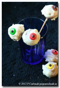 Höstlovet blåser in över oss. Kura inne och baka! Ögongodis är en Halloween-vänlig variant av chokladbollar som passar bra att baka tillsammans.